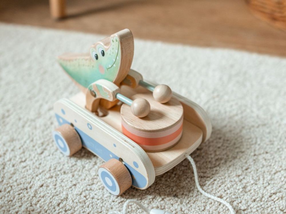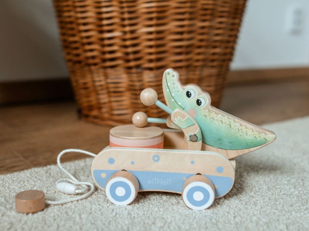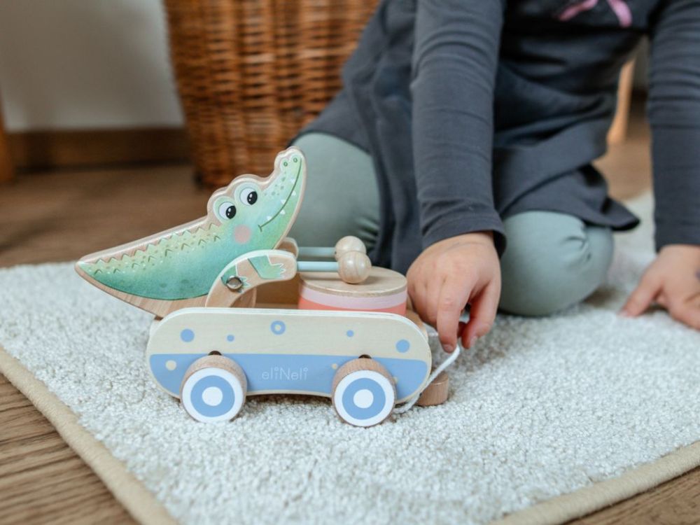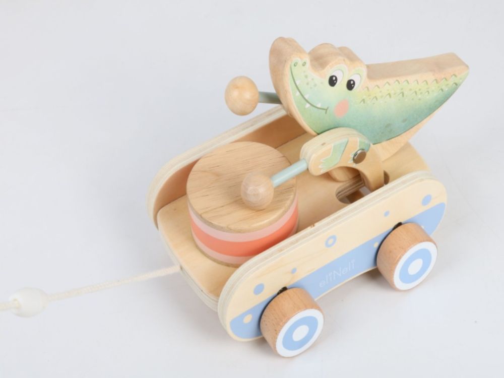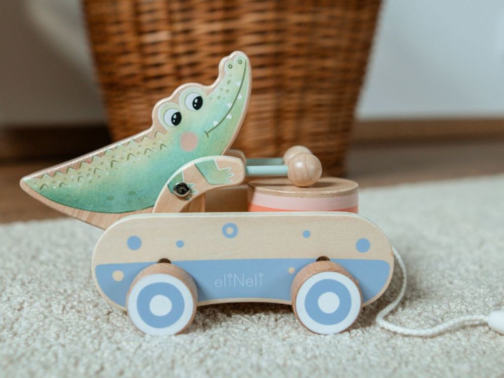 Crocodilul de tras încurajează dezvoltarea abilităților motorii, echilibrului și coordonării, în timp ce motivează copiii să se miște activ și să exploreze lumea din jurul lor. Este un prieten fidel care nu numai că va deveni un companion preferat în plimbările prin apartament, dar și un plus frumos pentru camera copiilor, combinând funcționalitatea, jucăria și farmecul unei jucării tradiționale din lemn. Șnurul de tras este echipat cu un ambreiaj de siguranță inteligent care se decuplează atunci când este tras mai tare. Astfel, copiii se pot juca în deplină siguranță, fără riscul de a se prinde sau de a se răni.