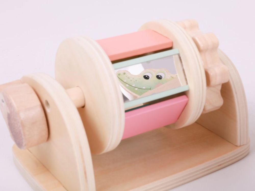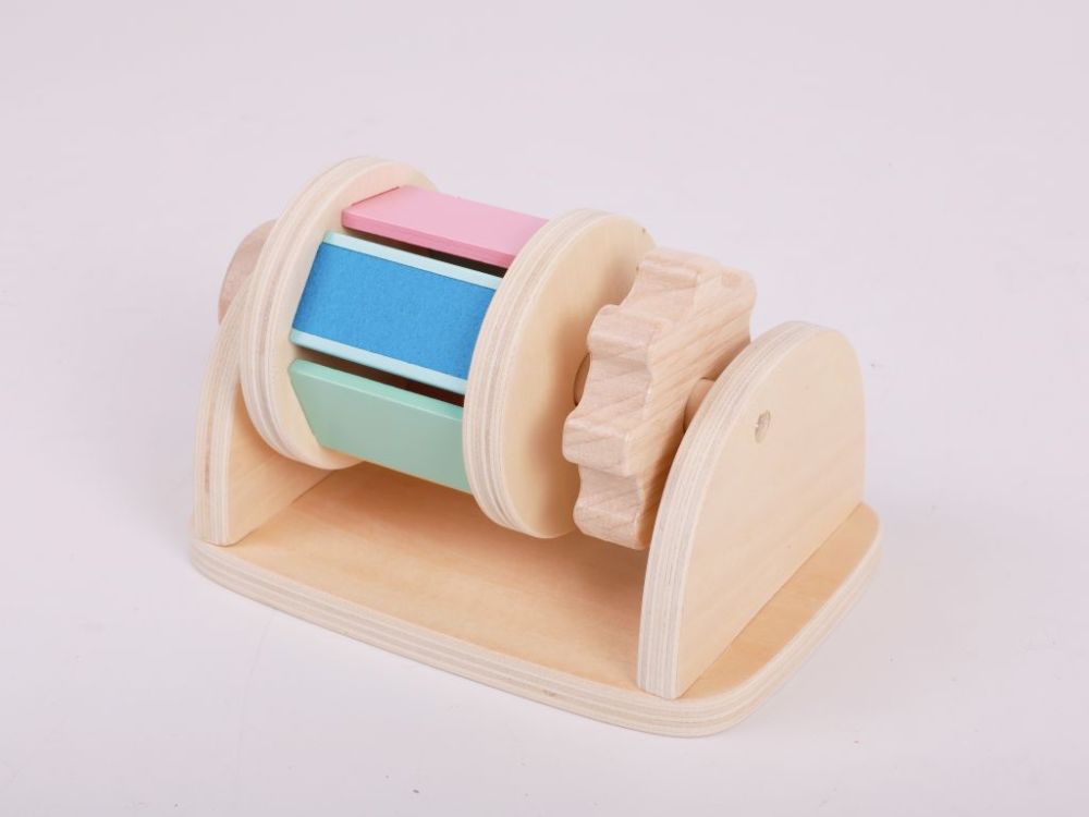 Tamburul rotativ favorizează dezvoltarea abilităților motorii fine, a coordonării și a percepției senzoriale. Datorită sunetelor și mișcării bilei, acesta motivează în mod natural copiii să exploreze și să se joace în diferite poziții.