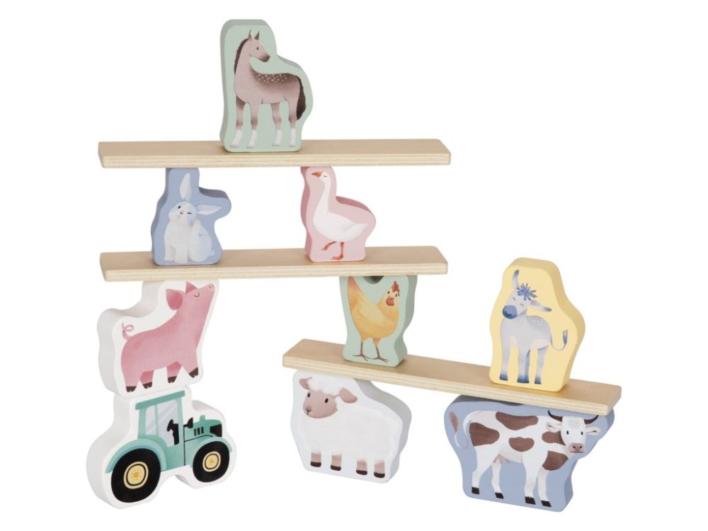 Copiii pot folosi animalele din lemn în forma lor reală pentru a se juca de-a fermierul sau le pot folosi ca elemente de echilibru într-un joc distractiv de echilibru. Fiecare dintre animale poate fi echilibrat, chiar și tractorul.