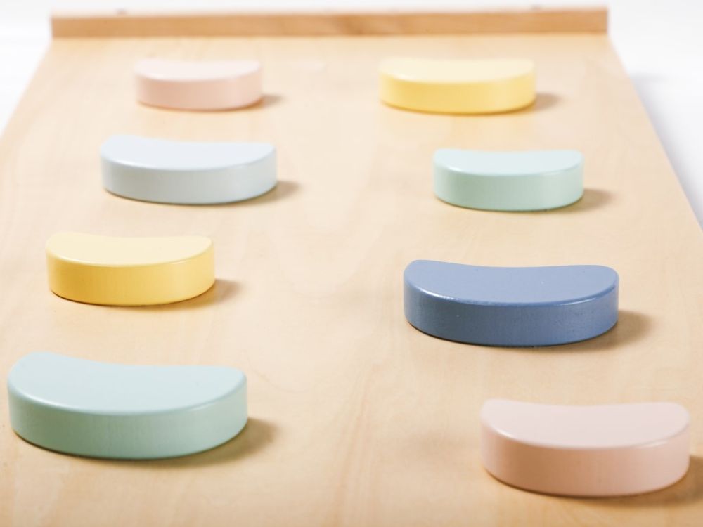 Leagan Montessori din lemn PRO 5 in 1 cu placa 2 in 1 – Pastel