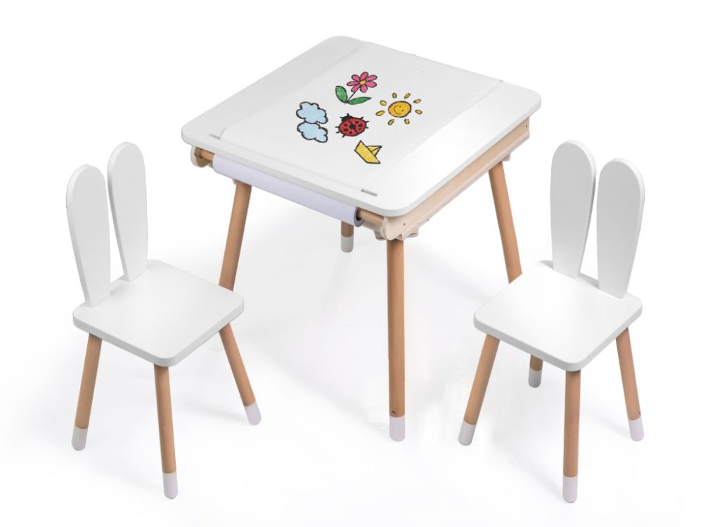 Set reglabil pentru copii – Masa de desen si 2 scaune cu urechi