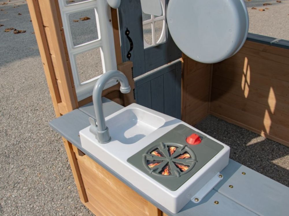 Detaliile realiste, precum o cutie poștală și o bucătărie pentru copii încorporată, dotată cu ustensile, adaugă o nouă dimensiune jocului și le permit copiilor să exploreze lumea livrărilor și a comunicării. Căsuța de grădină este ideală pentru dezvoltarea abilităților sociale și a imaginației.