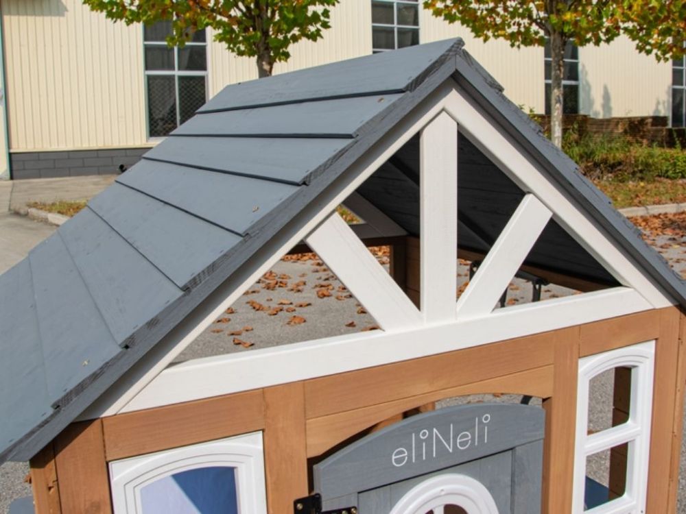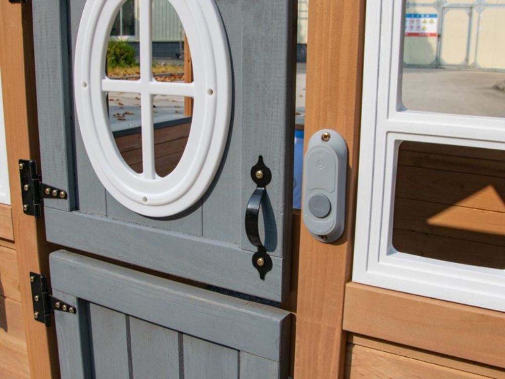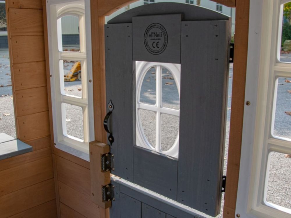 O cutie poștală realistă și o fereastră de distribuție adaugă elemente interactive suplimentare, în timp ce ușile olandeze și ferestrele pe mai multe laturi creează un spațiu de joacă deschis care încurajează jocul în grup, creativitatea și distracția în aer liber.