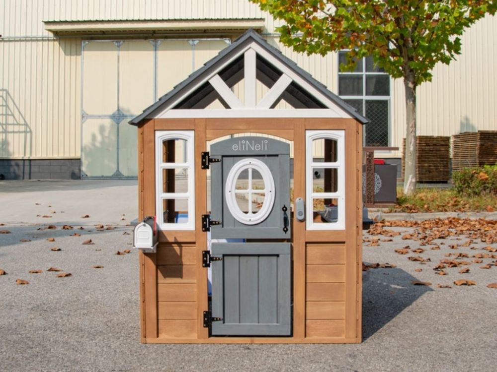 Căsuța de joacă este realizată din lemn de brad durabil, ceea ce asigură rezistență la intemperii. Este ideală pentru a fi amplasată în grădină sau în alt spațiu în aer liber.