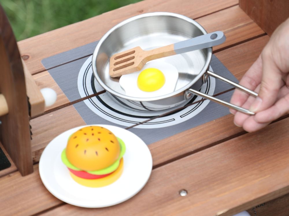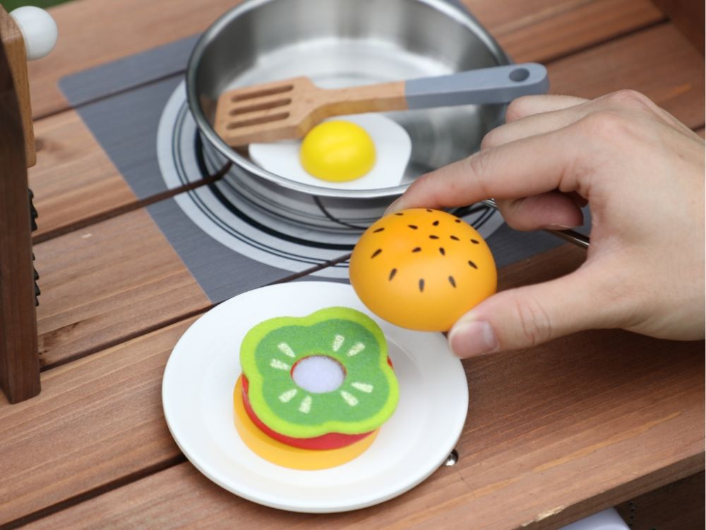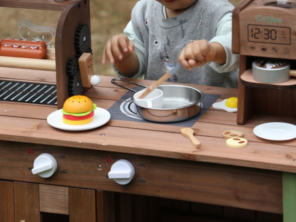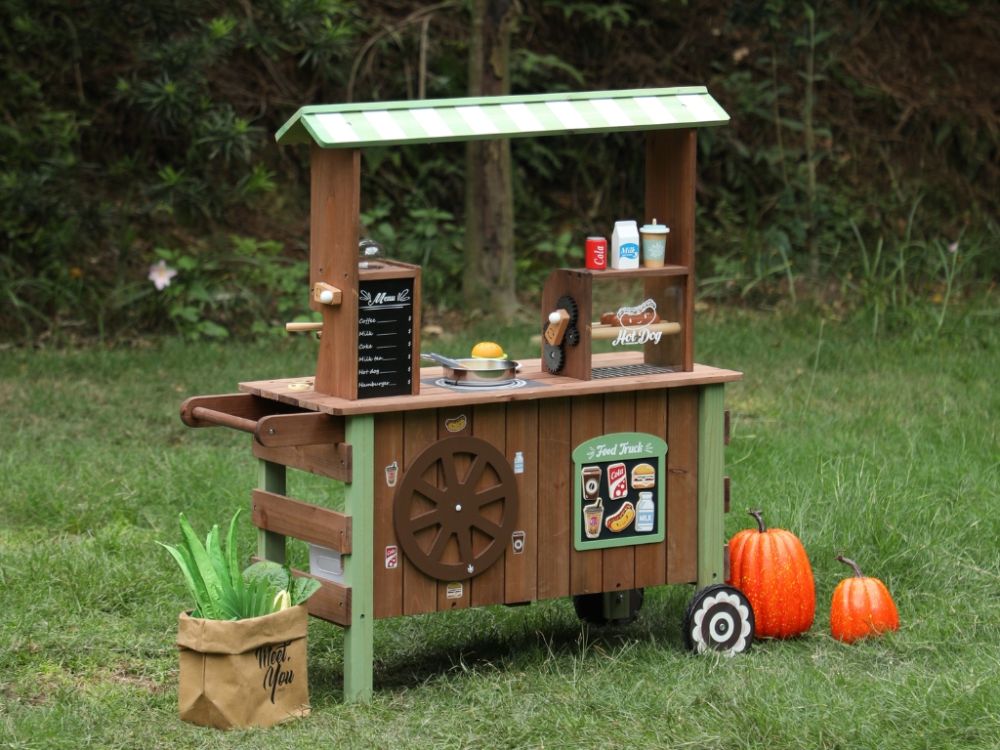 Mobilitatea standului aduce noi scenarii și idei de joacă – într-o zi o cafenea lângă casă, altă dată un bistro în grădină sau o piață. Copiii își dezvoltă astfel imaginația și se bucură de o distracție mai variată și mai dinamică.