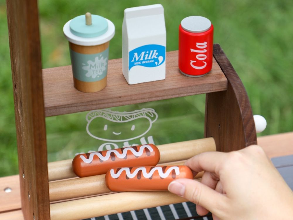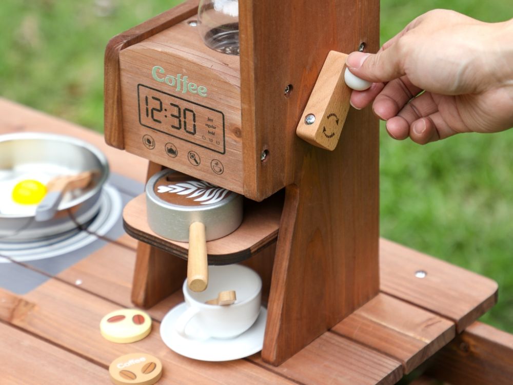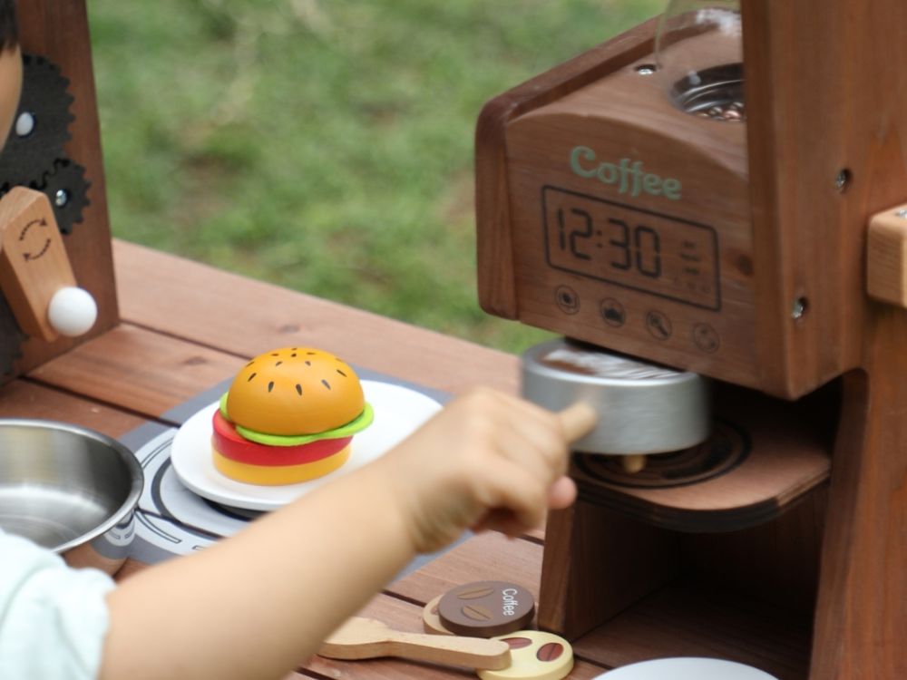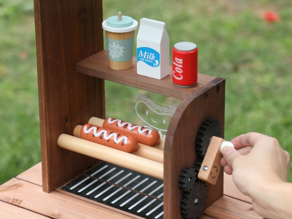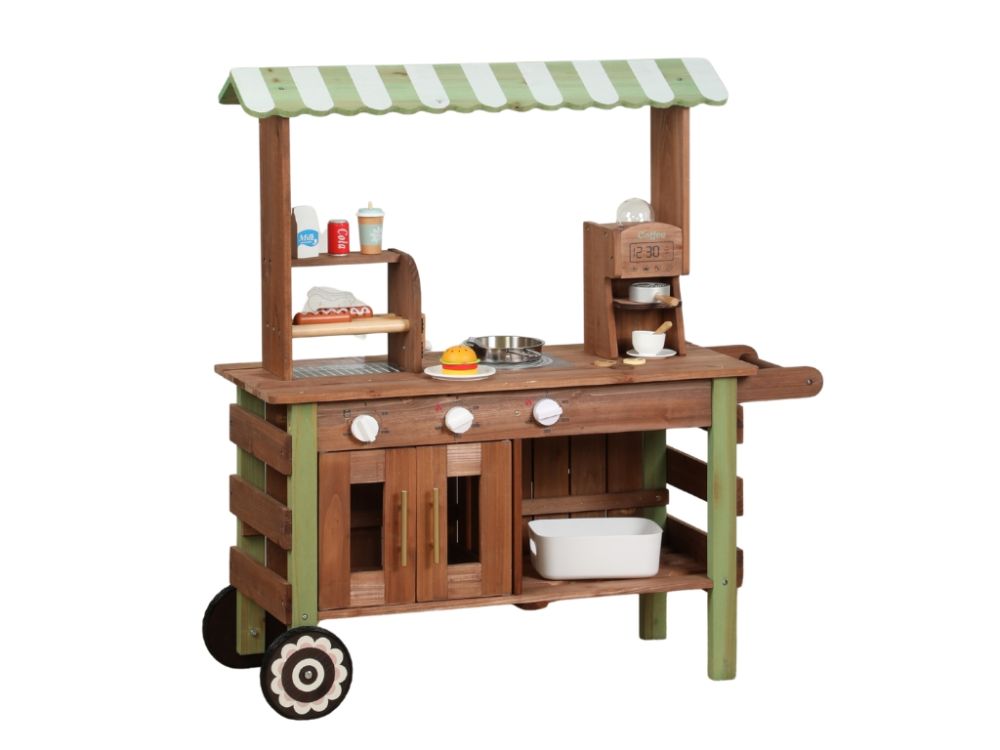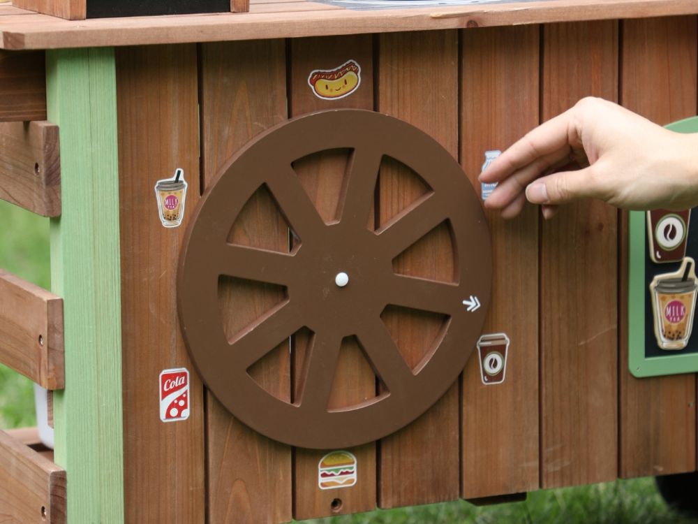 Standul include o mașină de cafea, plite, un rotisor și un dulap cu ușă care funcționează ca un cuptor, astfel încât copiii să poată prepara cafea, ceai și fast-food. Acest lucru le permite să se joace cu ușurință de-a cafeneaua, bistroul sau standul de stradă.