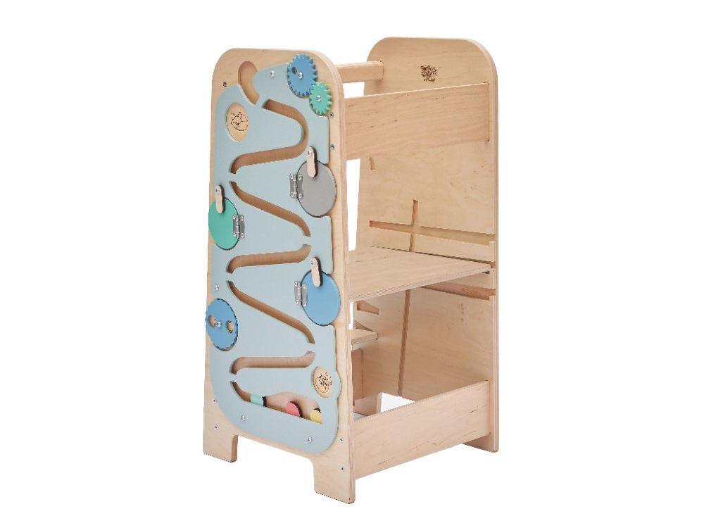 Turnul de învățare Play te va surprinde cu incredibila sa multifuncționalitate. Turnul de învățare Growing Learning Tower Play nu este doar un ajutor în bucătărie, ci se transformă cu ușurință într-un set de mobilier pentru copii. Pe laterale, oferă o mulțime de elemente de joacă pentru a-i ține ocupați pe copii în momentele în care trebuie să faci ceva fără participarea micului ajutor.